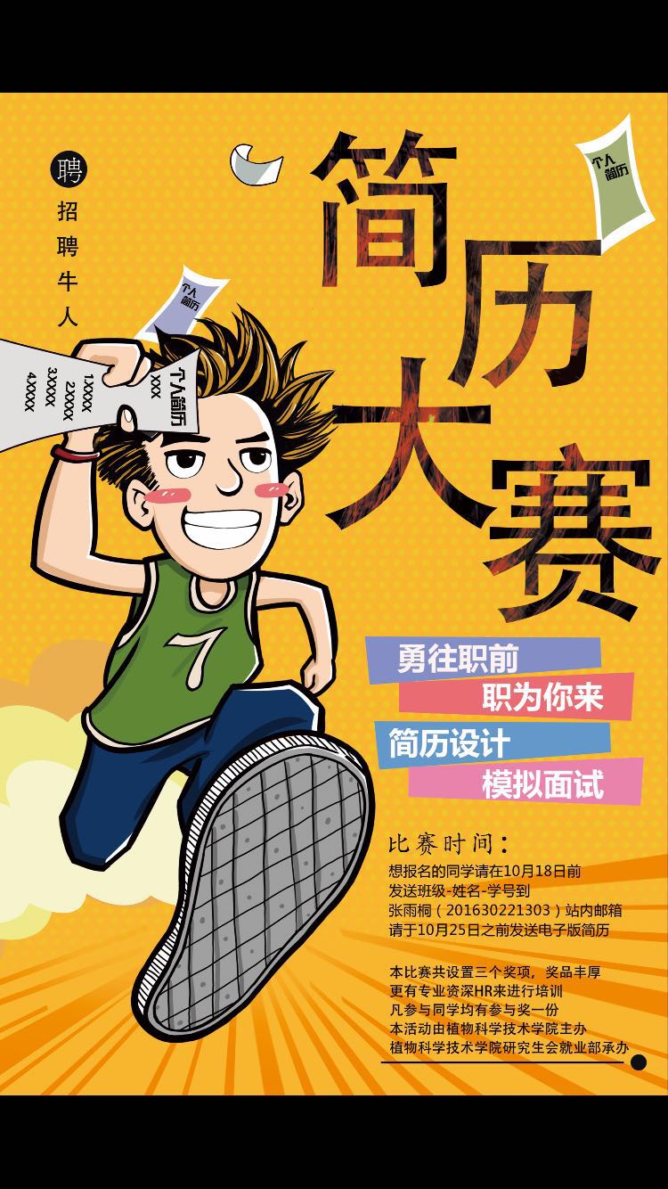 报名须知:报名同学请在10月18日前发送班级-姓名-学号到张雨桐(201630221303)站内邮箱,并请于10月25日之前发送电子版简历。