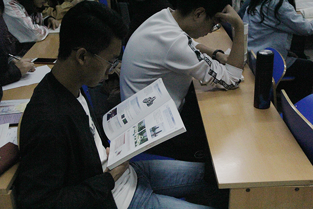 阅读越喜悦,悦心约未来。活动进行过程中,每个同学都沉浸在自己的阅读世界里,屏息凝神,空气中流露的都是书香之气。其中,资环班同学通过自荐的方式向其他同学介绍自己所看的书籍。相信通过这次活动,同学们都能从书中得到属于自己的喜悦。