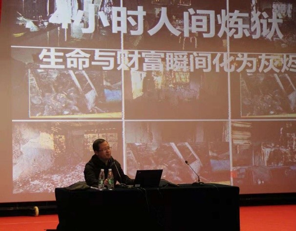 解鹏飞老师联系实际,通过触目惊心的案例,运用图片资料,从防范、逃生、自救、报警等四个方面深入浅出地介绍消防和交通知识。特别介绍了如何扑救初起小火、电器的防火措施、高楼起火如何逃生、灭火器等消防设施的种类和使用方法,同时,用活生生的事例纠正了许多逃生的误区。解鹏飞老师边讲边问,案例扣人心弦,内容环环相扣,给全体师生上了生动重要的一课。