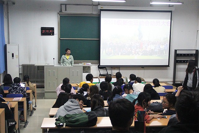 2018年10月17日晚上8:10,BETVICTOR在教室楼A座102室召开新生运动会动员大会,到场人员有BETVICTOR运动队队长邓勇,团学组织员工干部及参加本次新生运动会的运动员。