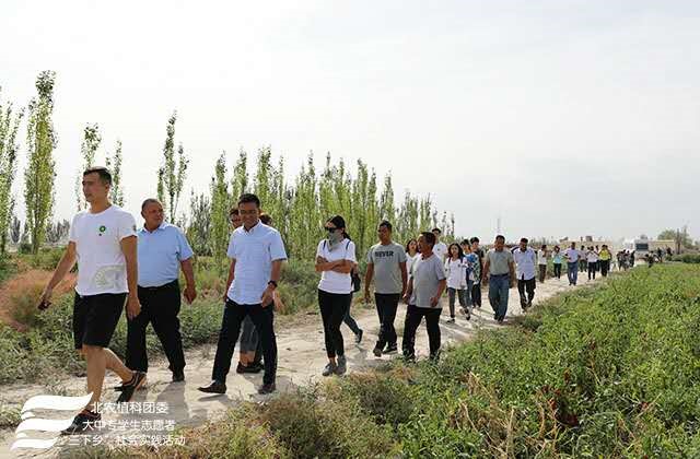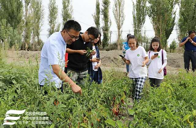2018年8月29号上午9时,在焉耆县农业局彭麦昌局长和县团委党组莫日根书记的带领下,实践团来到了焉耆县北大渠乡“辣椒种植技术现场会”观摩学习。据了解,此次观摩会活动是该县农业局首次举办。目的是向辣椒种植户介绍、展示不同新品种辣椒的区域试点种植成果,使农户更有针对性的进行选择。该活动受到了农户的积极响应,辣椒种植户纷纷来到现场交流学习。通过活动,实践团成员也了解到了真实的农业技术推广流程。