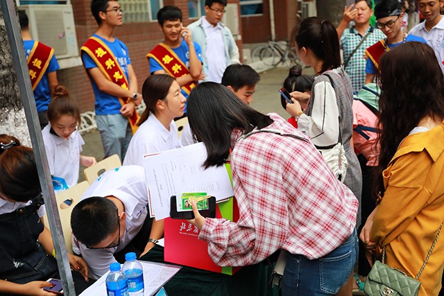风和日丽,暖意温新。伴随着和风,同学们陆陆续续在BETVICTOR服务台报到,在办理好相关入学手续后领取资料袋,与家长进行合影留念,最后在BETVICTOR志愿者的带领下进入宿舍。