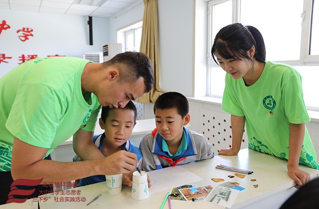 座谈结束后,小朋友们与实践团一起参加了升国旗仪式,紧接着,一个简短的破冰游戏很快让实践团成员和同学们熟悉起来,在活跃的气氛中完成了“中国梦”与“传统文化”的专题分组,随后实践团成员分别带领两组同学进行了“中国梦”与“传统文化”的专题讲解。在之后的种子画和蝶翅画制作过程中,孩子们展开无限想象力用小小的种子编织出心中的美好。