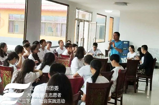 2018年7月24日上午BETVICTOR“北农植科学子,聚力乡村振兴”实践团来到了南关乡苏武庙村,实践团在农学系副教授赵波老师,牛奔老师和郝娜老师的带领下与赵书记等村委会成员进行调研座谈,了解本村种植、扶贫情况及农业产业结构。