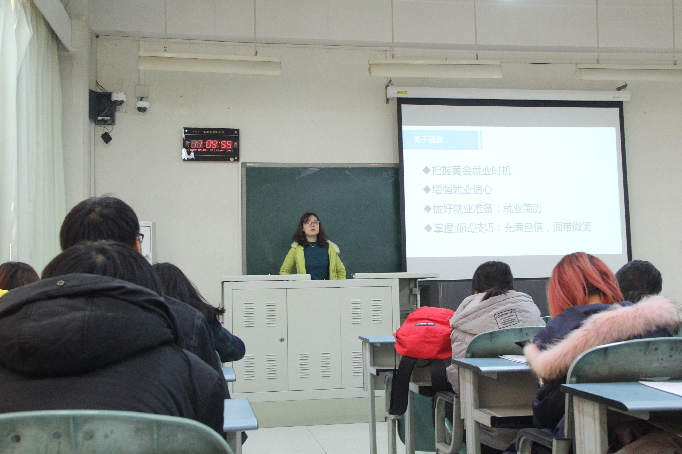 杨韫嘉老师就求职材料的撰写、简历面试技巧、签约注意事项、报到证的办理流程等方面进行了具体指导。尤其是在准备工作简历方面给同学们提供了详细的指导意见。杨韫嘉老师还给同学们在高校毕业生登记表的填写方面做了详细的讲解,她鼓励同学们在毕业实习期间要好好表现,加强实践锻炼能力,通过此次实习能够了解熟悉社会,并完成好实习报告。希望同学们根据自己的职业价值观理性选择就业单位,也要求同学们在实习中努力提高自己,为以后的就业做好全面准备。