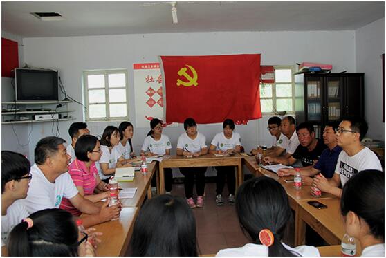 2017年7月25日上午,实践团来到南关乡南关村村委会,南关乡赵乡长和刘副乡长及该村村委热情接待了实践团,并进行了座谈。首先,赵乡长介绍了该乡种植农作物、产业结构调整等方面的情况,王绍辉老师针对乡内各村作物种植面积、耕作技术与赵乡长和当地村委进行了探讨。随后,实践团出发去往大棚,进行实地考察。