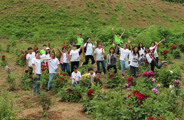接着实践团参观了该村的观赏产业——牡丹园。途经苹果梨园,成员们观察了果树的病害,认真记录下症状以便与专业教授进行研究并帮助农民解决问题。到达牡丹园后,遍地盛开的娇艳芍药与牡丹,引得成员们连连称赞。此牡丹为油用牡丹,不仅带动了旅游业的发展,帮助该村脱贫致富,同时具有观赏价值和极高的经济价值。