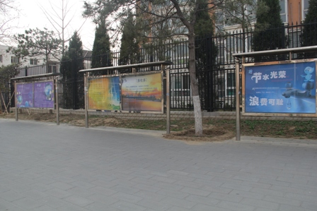 茶社的同学们将“栋梁之才不可无,生命之水不可枯”等内容的条幅挂在七号宿舍楼外已提醒同学们节约用水用电的重要性。同时还将带有介绍国内外水资源情况及各国采取的科技化节能措施的海报张贴在员工公寓区域三食门口的告示栏上,以普及大家的节约常识。