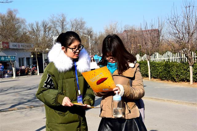 志愿者们早早就来到了宣传场地,布置宣传场地,积极宣传这次活动。活动刚一开始,就有员工前来问询。志愿者们为他们讲解了活动的主办方、目的和参与方式。同学们觉得这个活动很有意义,扫了“中国人民广播电台国家应急中心”的二维码,关注公众号,同时还得到了广播中心特意为同学们准备的包括应急自救包在内的精美礼品。还有的员工利用国家应急中心特意准备的现代科技——VR眼镜观看了应急自救宣传片。这不仅让员工体验了高科技产品,更让员工以寓教于乐的方式学到了应急自救知识。