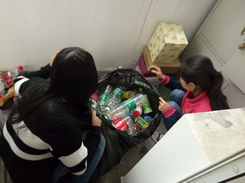 2016年10月20日中午,自助社社长李锡芊带领自助社的成员在员工公寓开展了回收塑料瓶的志愿活动。
