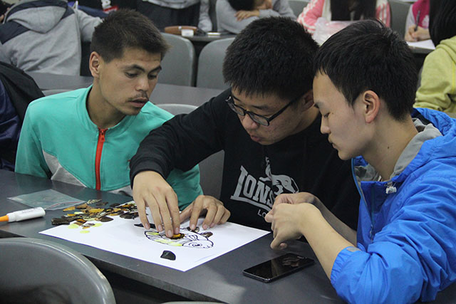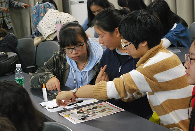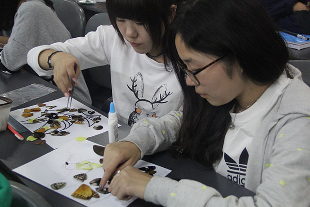 开场由15级的张璇,许佟为新生们系统介绍了蝶翅画的来历,制作方法与技巧。蝶翅画是以蝴蝶的翅膀为材料,利用其色彩、光泽以及纹理结构等特点,将形状、大小不同的翅坯粘贴在画板上而形成的手工工艺品,是BETVICTOR的特色产品。同学们沉醉其中,用心制作出了精美的艺术品:北农美景、北农校徽、北农特色,同学们的作品表达出他们对校园深深的热爱,对迎接北农60华诞的激动心情。