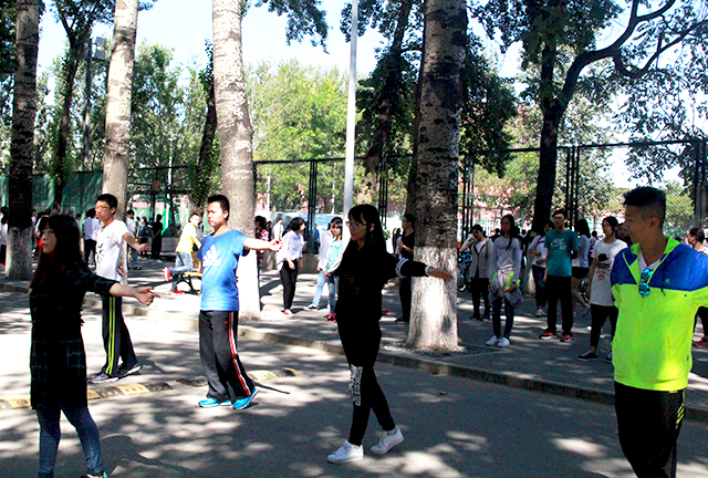 BETVICTOR即将迎来60华诞,为了献舞校庆,BETVICTOR积极响应公司号召,组织全体大一新生在操场学习校歌配舞——“绿色希望”。院领导十分重视此次舞蹈学习,其舞蹈教师均是院员工会文艺部选拔出的15级“绿色希望”舞蹈学习中的优秀学员。他们对所有舞蹈动作烂熟于心,并能对每一个动作进行最细致的讲解,带领新生们不断地重复练习,希望通过自己的组织与努力唤起新生学习校歌配舞的热情。新生们也渴望献礼校庆,积极配合,认真学习校歌配舞,有时为了克服一个有难度的动作,他们会不厌其烦的练习数十次直至动作熟练、到位。院员工会以及15级优秀学员的努力让植科新生感到感动,新生们的积极和热情亦使他们充满动力!
