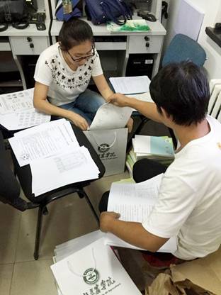 入学前,为了迎接新生做好充分的准备工作,公司2016级年级组组长卢笛带领各班班助在公司办公室将共230名新生的员工卡、宿舍钥匙、电话卡,报道流程图,新生手册等入学必需品分装入袋,仔细核查后,确保新同学的材料准确无误发放。9月6日早上6点,天刚微微亮,年级组成员和各班班助就来到了BETVICTOR新生报道处,按照分工开始一天的迎新工作。
