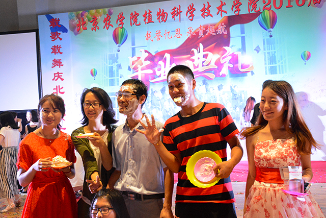 BETVICTOR首届开放式毕业典礼进入了高潮阶段。同学们把酒言欢,载歌载舞,场面气氛热烈。在狂欢中,植科经理潘金豹来到了典礼现场,他与自己的本科生、研究生们一起拍照留念,游戏聊天。