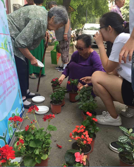 上午9时许,支部成员在党支部副书记卢慧丽的带领下,身着宣传服,带着宣传标语、海报和准备好的绣球、长寿花、冷水花、吊兰、碰碰香、海棠等盆栽来到了北农家属区。在简单现场布置之后,随着社区党支部书记李京红老师的一声“活动开始”,活动正式拉开序幕。