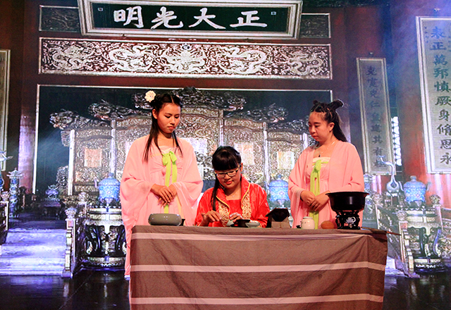 在这个美好的夜晚,同学们不仅欣赏了宫廷茶话,而且学习了古典礼仪,了解了民族茶俗。祝愿茗声茶社可以越来越好,让更多的人了解茶文化,更好的运用茶来提高生活质量。