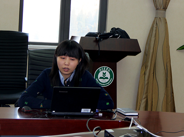 青年教师田晔就《地上部反馈调节棉花早衰的激素调节机制》进行报告,报告结束后青年教师结合自身研究领域展开了激烈的研究和讨论。