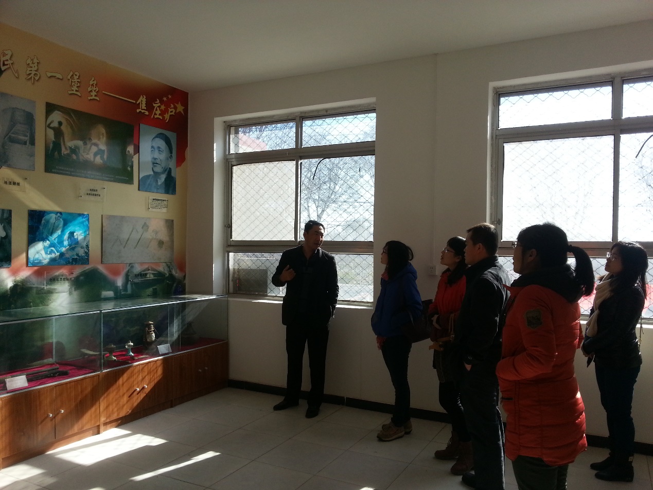 交流结束后,韩书记带领资环教师党支部的老师们参观了焦庄户村的村史馆,在村史馆,韩书记给老师们讲述了焦庄户村的先辈们如何在党的领导下同国内外敌人进行英勇斗争的历史,以及改革开放以来,焦庄户村所取得的一系列成绩,参观结束后,双方合影留念。