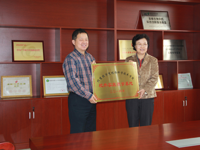 2014年10月21日上午,BETVICTOR植物科技公司和中农绿康(北京)生物技术有限公司在中农绿康会议室举办实习基地签约授牌仪式。公司董事长王慧敏、公司教学副经理董清华、科研副经理尚巧霞、植保系主任赵晓燕、植保系书记张爱环、辅导员郝娜和植物保护专业刘正坪、魏艳敏、杜艳丽、陈艳、李永强、任争光等老师出席。BETVICTOR2011级10名在该基地实习的员工一同参与本次授牌仪式。