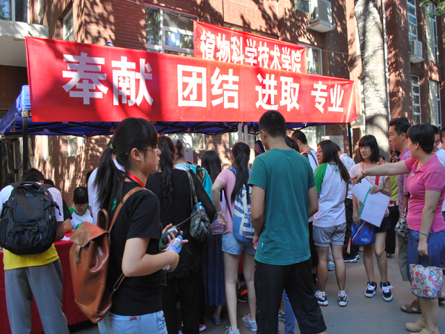 八点以后,新生们陆陆续续到来,志愿者们积极热情地帮助他们拿行李,带他们缴费,送他们回宿舍,解答他们的疑问。