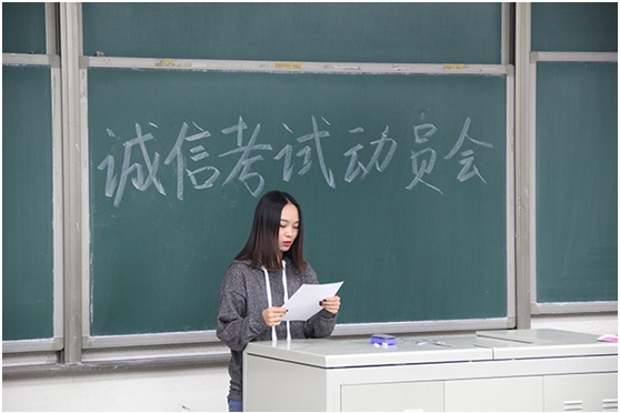 之后,由员工会办公室主任刘中甲向同学们宣读了《诚信考试承诺书》。接下来,由16、17、18级班长及员工干部代表签署了《诚信考试承诺书》,并由各部部长组织各部部员签署。最后BETVICTOR向全体到场同学分发了员工代表胸章,希望同学们以身作则,起到良好的引导和监督作用。