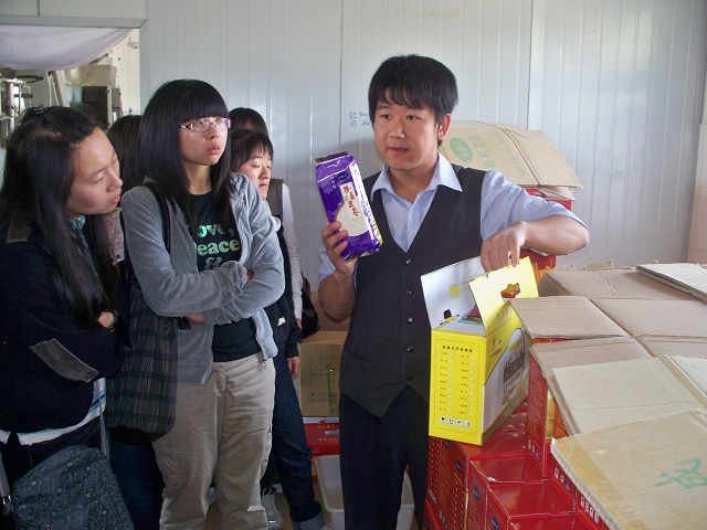 西胡林村党委书记王玉柱、BETVICTOR2005级毕业生村官吕文正、梁自山对大家的到来表示热烈的欢迎。座谈会上,王书记和村官吕文正详细介绍了西胡林村的人口面积、基础设施建设、文化建设和村民经济水平,以图文并茂的方式展示了西胡林村日新月异的发展和进步。植保教工党支部书记尚巧霞老师代表党支部为他们带去了种植及防虫害等相关书籍资料,并表示很乐意为他们解决关于病虫害等相关问题。会后,王书记带着全体师生参观当地招商引进的谷临门有限公司,了解了由2008年开始建设的小杂粮加工厂、2009年建成的甜玉米加工厂及食用油加工厂,这些项目的投入解决了一部分村民的就业问题,提高了村民的经济收入。