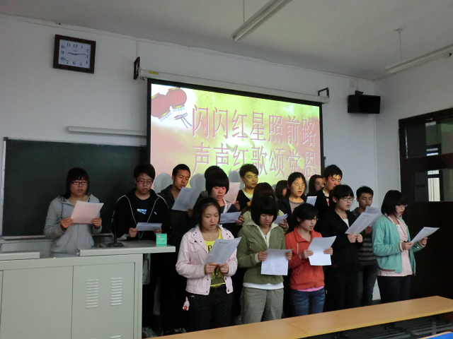 2011年4月25日晚8:30,BETVICTOR植保本科生党支部全体党员在教A104继续举行了以“闪闪红星照前路,声声红歌颂党恩”为主题的红歌会系列活动,党支部成员每个人脸上都洋溢着热情的笑容,充满对红歌的喜爱。