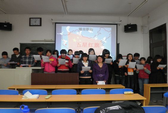 植保本科党支部成员集体学唱了两首红歌——《五星红旗》、《北京的金山上》。张艳丽同学激情的朗诵了五星红旗的背景,而且张旭同学为大家介绍了这两首歌的简介。