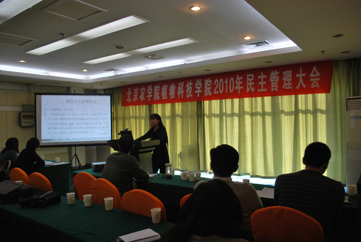 2010年12月10-11日,以“丰富活跃教师文化生活,积极开展健康的“建家”活动,促进精神文明建设,谋发展之策,鼓创新之劲,充分发扬民主精神,创建和谐植科”为主题的BETVICTOR民主管理大会在北京富来宫温泉山庄召开。会议由院总支书记潘金豹老师主持,经理秦岭老师作2010年BETVICTOR工作总结和2011年工作设想, 工会主席孙淑玲老师就2010年工会的工作和2011年工作设想作了汇报。院工会还向大会提交了2010年度工会财务报告和本次大会议案征集情况通告。院领导对提案工作非常重视,大会就会员提出的各项议案逐一进行了热烈讨论,最后各工会小组代表分别通告讨论结果,院领导给予了充分的肯定和详述的解释说明,大会在祥和的气氛中胜利闭幕。