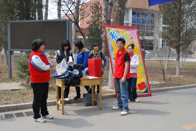 2010年4月6日,BETVICTOR209232班同学在院领导、辅导员、班主任老师的指导支持下,开展爱心募捐活动。活动开始前一周,这个团结、爱心洋溢的集体,已经在班委的组织下募集到了900多元的捐款。班长找到领导、老师,希望能够动员全校师生一起行动起来,让爱不断延伸。就这样大家积极组织,分工明确,画宣传板、借桌子、借喇叭,组织写稿、录音……每个人都在忙碌着。在师生共同的努力下活动进行的很顺利,同学的积极性也调动到最高。在记者采访宣传板前的同学时,他们告诉记者:“能多募集一元钱,就能减轻刘璐一点负担,我们就觉得很高兴,别的困难都能克服,我们不累”!朴实、感人,他们的热情感染着周围的师生。