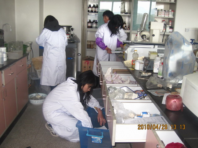 在管理实验室老师的安排下,大家分工合作,分成两天帮助老师进行实验室的清理和仪器的归类整理。摆放仪器、清洗水槽、清理试验台、扫地、拖地,每位同学认真努力的完成任务。经过两个下午的打扫,五楼植物保护教研室的几个实验室被全体成员打扫的一尘不染。