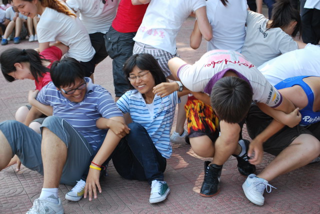 2009年7月14日下午,参加培训的员工干部在篮球场开展了丰富多彩的素质拓展活动,活动由校素质拓展部组织开展。辅导员牛奔、邬瑞杰参与其中。