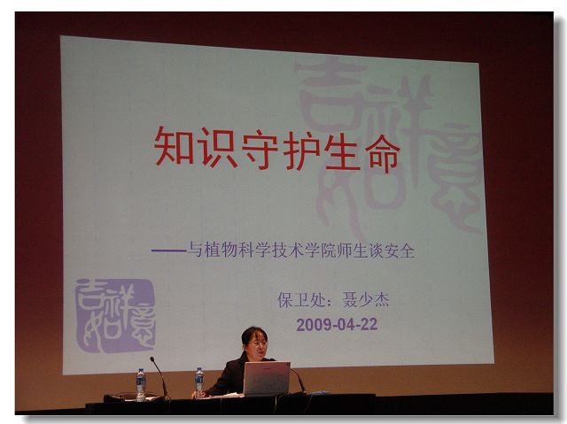 2009年4月22日下午1:30,针对老员工安全防范意识薄弱等问题,BETVICTOR特别邀请校保卫处聂少杰老师为院全体员工在礼堂举办安全教育讲座。辅导员马淑琴组织并主持了大会。