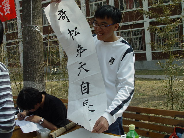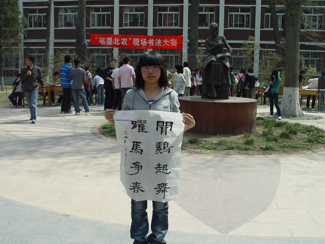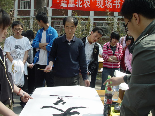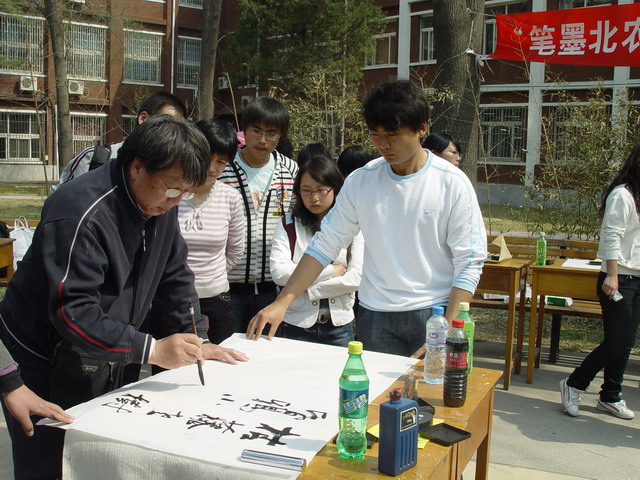 为弘扬国学文化,为爱好书法的同学提供交流进步的平台,为建设人文北农贡献力量。4月8日中午在教学楼A-B之间的小花园,植物科技公司书法社面向全校师生举办“笔墨北农”现场书法大赛。公司党委副书记高喜军、离退休处长梁宝岩、离退休处老教授张荫钊、温玉斋、李俊、园林系副主任李金苹、BETVICTOR副经理赵金芳、辅导员老师亲临现场观看指导。