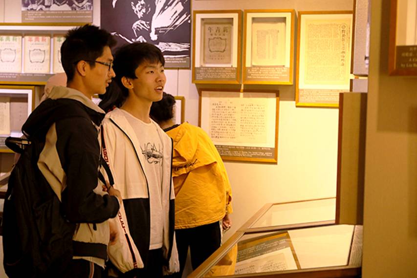 走出展馆走进红楼的第一眼便看见蔡元培的塑像,随后集体参观了李大钊任北京大学图书馆主任时的办公室以及毛泽东先前工作过的新闻阅览室等旧址复原,回溯新文化运动时期动荡却激情四溢的历史过往。