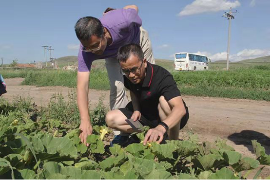 简单休整后,跟随着草原村李书记的脚步,实践团的带队老师郝娜、公司园艺专家谷建田老师、果树专家王建文老师以及四位访谈组的同学到达了他们的田地,对当地作物进行技术扶贫。经李书记带队,我们依次去考察了当地的欧李、油麦、辣椒、胡萝卜等农作物,老师们现场给村民在农作物的防治病虫害、种植技术等方面做了指导工作。