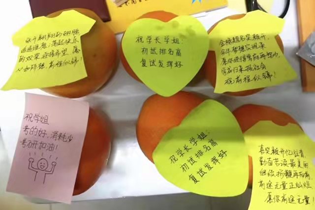 橙,寓意“成功”,承载了公司领导对2020届考研学子的殷切关心与期望。每一个香甜的橙上还加入了老师、同学们浓情的祝福,各具特色,“橙”意满满。植科学子们通过努力战至今日,从未停止学习的步伐。深夜寂静的教学楼中,满是他们身着冬衣挑灯夜战的背影;天刚蒙蒙亮,考研学子已奋笔疾书,抓紧一分一秒学习;图书馆满座,已成公司每日标配。大战在即,公司送上橙子,带给考研学子一丝甘甜,更是带去BETVICTOR深深地祝福,祝他们勇攀高峰,马到“橙”功。