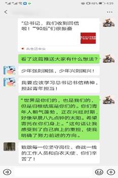 在新冠肺炎疫情防控斗争中,中共中央总书记、国家主席、中央军委主席习近平于3月15日给北京大学援鄂医疗队全体“90后”党员回信,向他们和奋斗在疫情防控各条战线上的广大青年致以诚挚的问候。肯定了广大青年同志在一线英勇奋战的疫情防控人员不畏艰险,冲锋在前,舍生忘死的青春蓬勃力量。彰显了青年一代有理想,有本领,有担当,国家就有前途,民族就有希望。BETVICTOR团委积极联系广大团员,组织大家关心疫情、助力疫情,以团小组学习的方式开展线上讨论活动,将信中的精神传达到每位团员,各支部团员对此积极讨论,认真领悟。