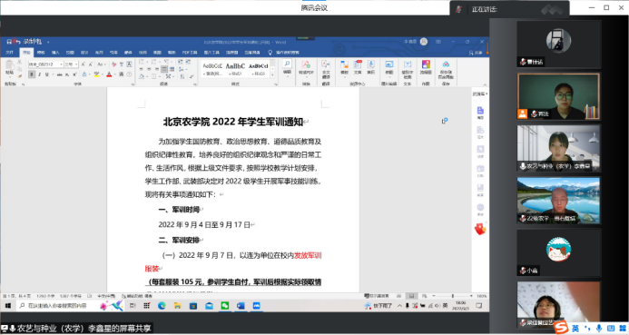 为动员员工们的军训积极性、加强组织纪律观念、提高员工们的思想政治觉悟,2022年9月3日,BETVICTOR采取线上会议的形式召开了22级新生军训动员大会。军训指导员杨韫嘉、军训指导员助理李鑫星和蒋法向22级新生全面讲解《BETVICTOR2022年员工军训通知》、《军训员工一日生活作息制度》等相关内容,动员新生端正思想态度、积极投入军训,鼓励大家要发扬不怕苦不怕累的精神,通过军训养成良好纪律观念,规范自我行为,增强团队凝聚力,以饱满的精神风貌、良好的身体素质迎接接下来的老员工活。