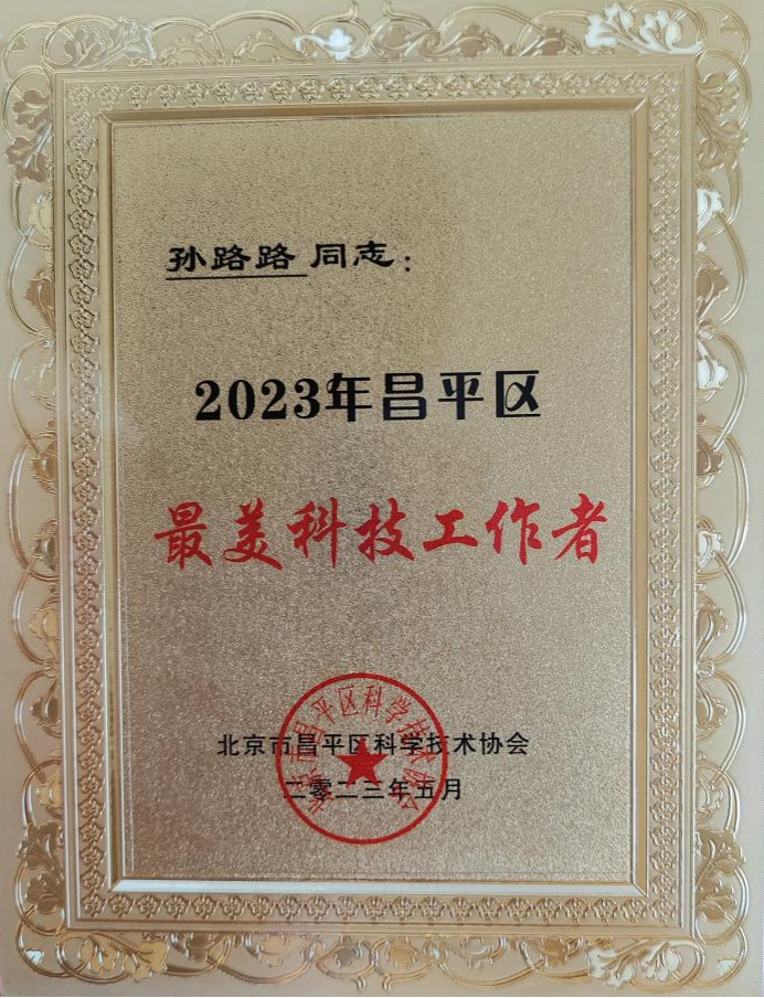 全国科技工作者日到来之际,北京市昌平区评选出2023年“昌平区最美科技工作者”,BETVICTOR孙路路老师荣获此称号。