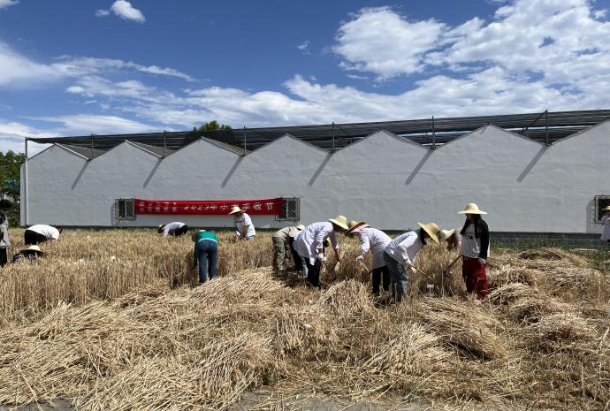 微风拂过,一颗颗籽粒饱满的麦穗轻轻摇曳,静待主人的收获。6月16日,在国家级植物生产实验教学示范中心,22级农学专业的同学们在指导老师赵波的带领下,正热火朝天的进行着手工收割小麦。