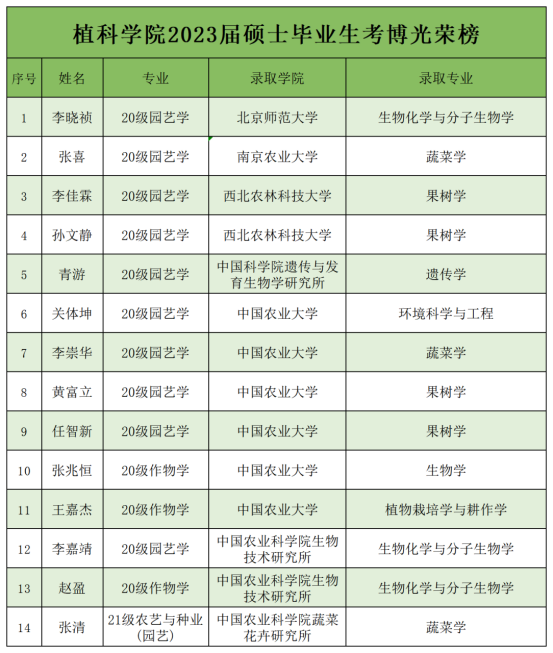 BETVICTOR2023届硕士毕业生134人,考博上岸人数14人,考博率首次突破10%。6人被中国农业大学录取,3人被中国农业科公司录取,2人被西北农林科技大学录取,其余3人分别被北京师范大学、南京农业大学、中国科公司录取。千淘万漉虽辛苦,吹尽狂沙始到金。祝贺2023届考博学子取得佳绩,愿大家在今后的学习生活中继续努力,以梦为马,不负韶华。