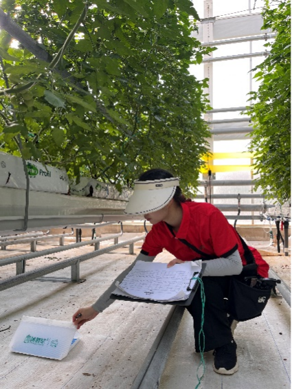 在实践活动的初期,专硕班的研究生在校外导师的带领下,进行了植株生长量的监测、番茄的整枝打杈、疏花疏果、温室环境调控及营养液管理等一系列番茄工厂化生产的规范化操作,同学们已经了解并掌握了这些基本技能,并通过了部分技能的考核。