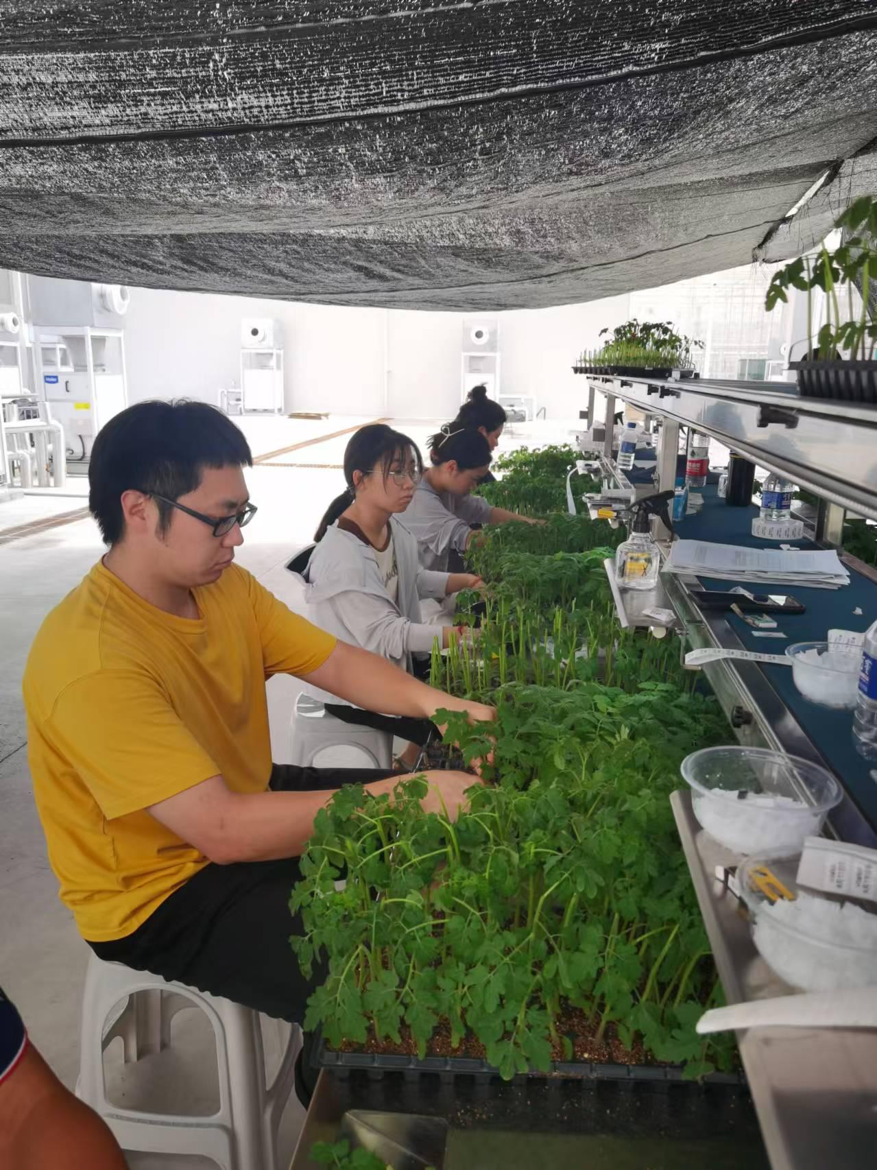 截至8月底,为期1个月的育苗工作已经结束。同学们完成了近30000棵番茄、辣椒苗的嫁接工作。目前,专硕班的同学们进入了毕业论文的试验阶段,同学们将开展近百个番茄、彩椒品种的品种比较试验。