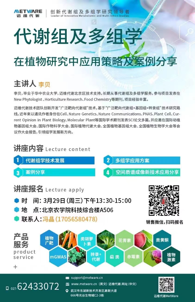 题:代谢组及多组学在植物研究中应用策略及案例分享