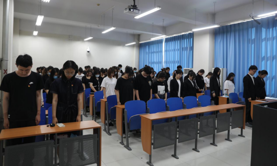 饱食思国士,悼念袁隆平。教室内,弥漫着悲伤而又肃穆的气氛,与会党员和积极分子们怀着无比沉痛的心情,集体默哀3分钟。