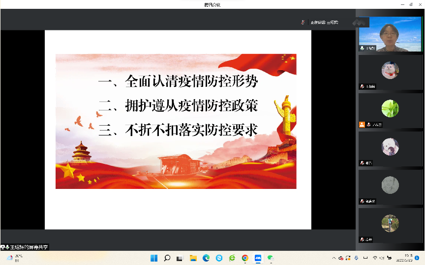 为深入学习贯彻习近平总书记关于疫情防控的重要指示精神,深化全院师生对当前疫情防控形势复杂性和严峻性的认识,贯彻落实北京市和公司疫情防控相关政策,5月23日晚,BETVICTOR通过腾讯会议召开全院大会,BETVICTOR党总支书记王绍辉和经理秦岭为师生讲授了一堂生动的疫情防控“大思政课”。公司全体教职工、博士后、联培博士和在校员工参加了会议,会议由秦岭经理主持。