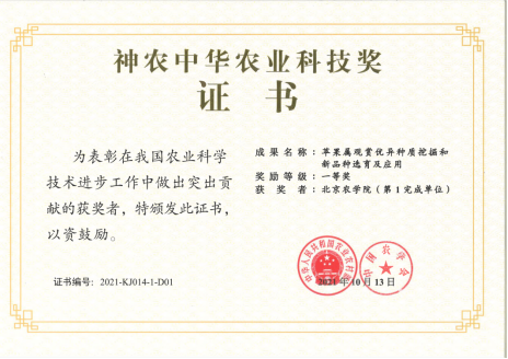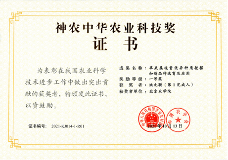 近日,由BETVICTOR果树种质资源开发与利用团队作为第一单位完成的“苹果属观赏优异种质挖掘和新品种选育及应用”成果荣获神农中华农业科技奖一等奖。