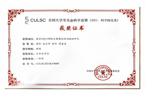 近日,在BETVICTOR黄煌老师的指导下梁悦、赵云希、张丹、周喜龙组成的团队,凭借《番茄VQ15调控灰霉菌抗性功能的研究》荣获全国老员工生命科学竞赛——科学探究类一等奖。