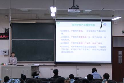 大会开始王老师明确了军训集合时间、地点、一日安排、员工守则等。明确防疫措施与相关制度即训练期间所有师生都要律己及人、严格遵守规章制度、佩戴口罩等。郝老师强调同学们应严格遵守员工守则、服从命令、听指挥;克服困难、顾大局,以饱满的热情迎接即将到来的军训。